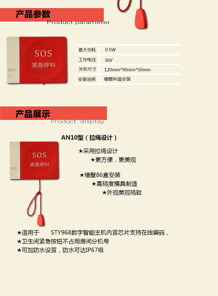 開 作者 衛(wèi)生間緊急按鈕 0 評論 AN11型緊急按鈕 描述: 1、用于衛(wèi)生間 2、長:86mm 寬:86mm 厚:50mm 3、墻壁86盒安裝 4、無對講功能 5、可加防水、防水等級可達IP67級